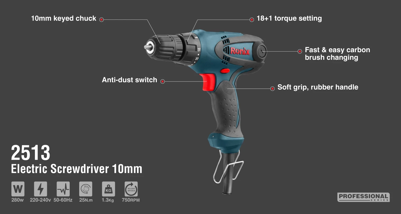 - High performance 280W motor enables perfect functionality in fastening with different torques