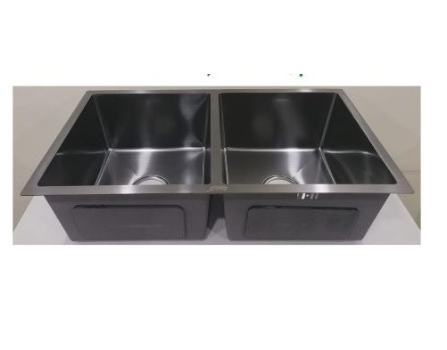 - Handmade double bowl sink made of stainless steel.