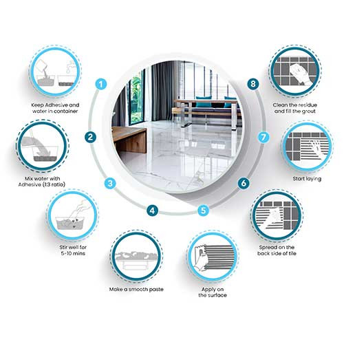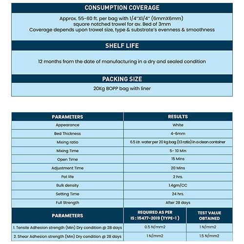 - Specially designed for fixing ceramic and vitrified tiles in interior floor surfaces. This highly flexible adhesive also has an excellent waterproofing ability. When properly applied, it takes care of hollowness problem.