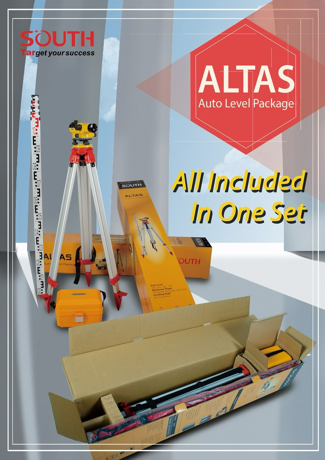 South ATLAS Auto Leveling Set With Tripod And Staff
