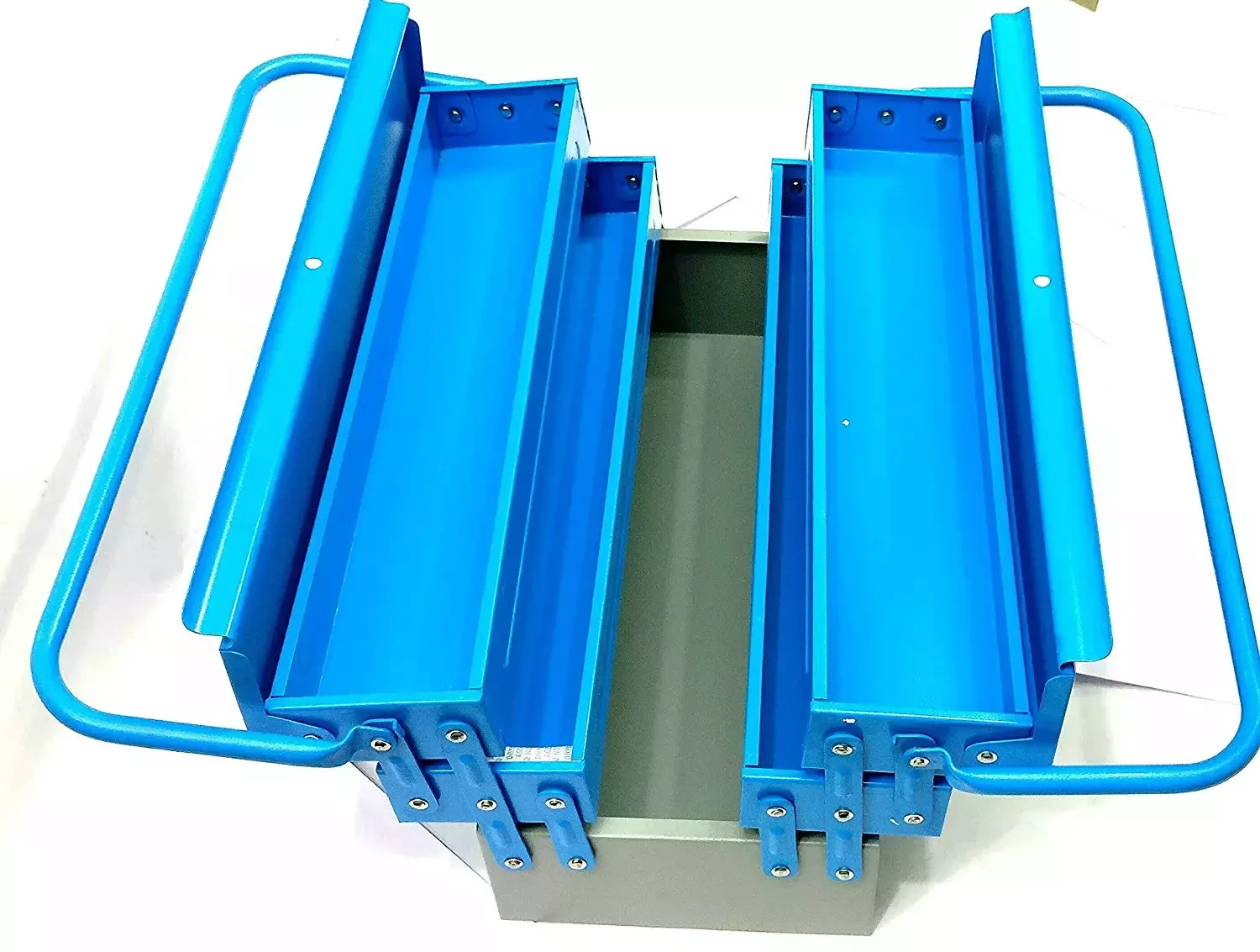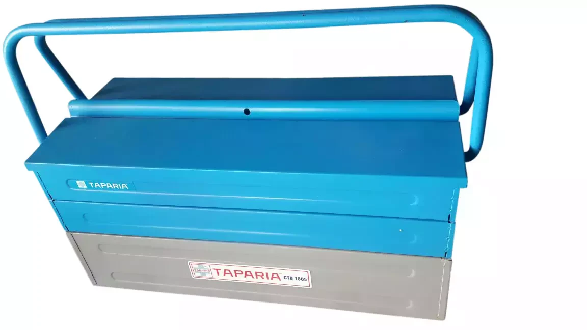 The Taparia 5-tray cantilever tool box is an ideal storage solution for your multi-purpose tools and equipment. The main tray of the tool box is made of 0.8-0.85 mm thick steel sheet having STAINLESS STEEL RIVET OF 304 GR which eliminates any corosion and increase strength. The S S WASHERS with 202 grade-which eliminates any corosion. To give the trays a rigid structure, the cantilever strip is 1.5 mm thick and has been designed to be extra sturdy. The handle of the tool box is 2 pcs for better handling and can be locked with padlocks. The lid cover of the tool box has provision for padlocks so that you can safely store your expensive tools and equipment.