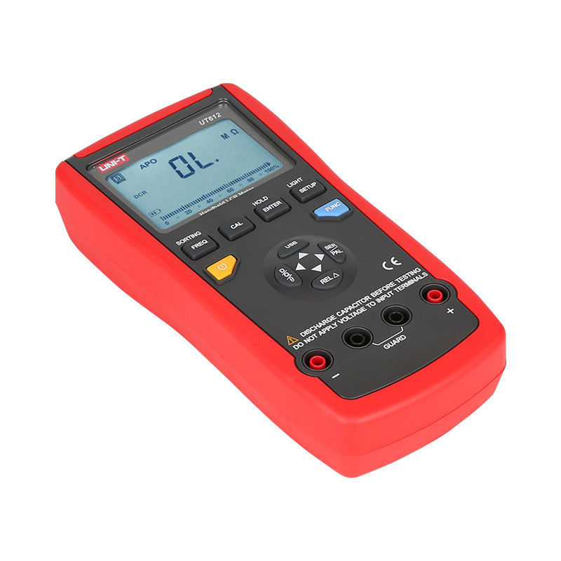 UT612 LCR meter is used to measure inductance, capacitance and resistance. Advanced features include series/parallel measurement modes, quality factor/loss/phase angle measurements, equivalent/DC resistance measurements and 5 selectable frequencies in AC mode. UT612 can be used in production lines, component inspection and electronic maintenance.