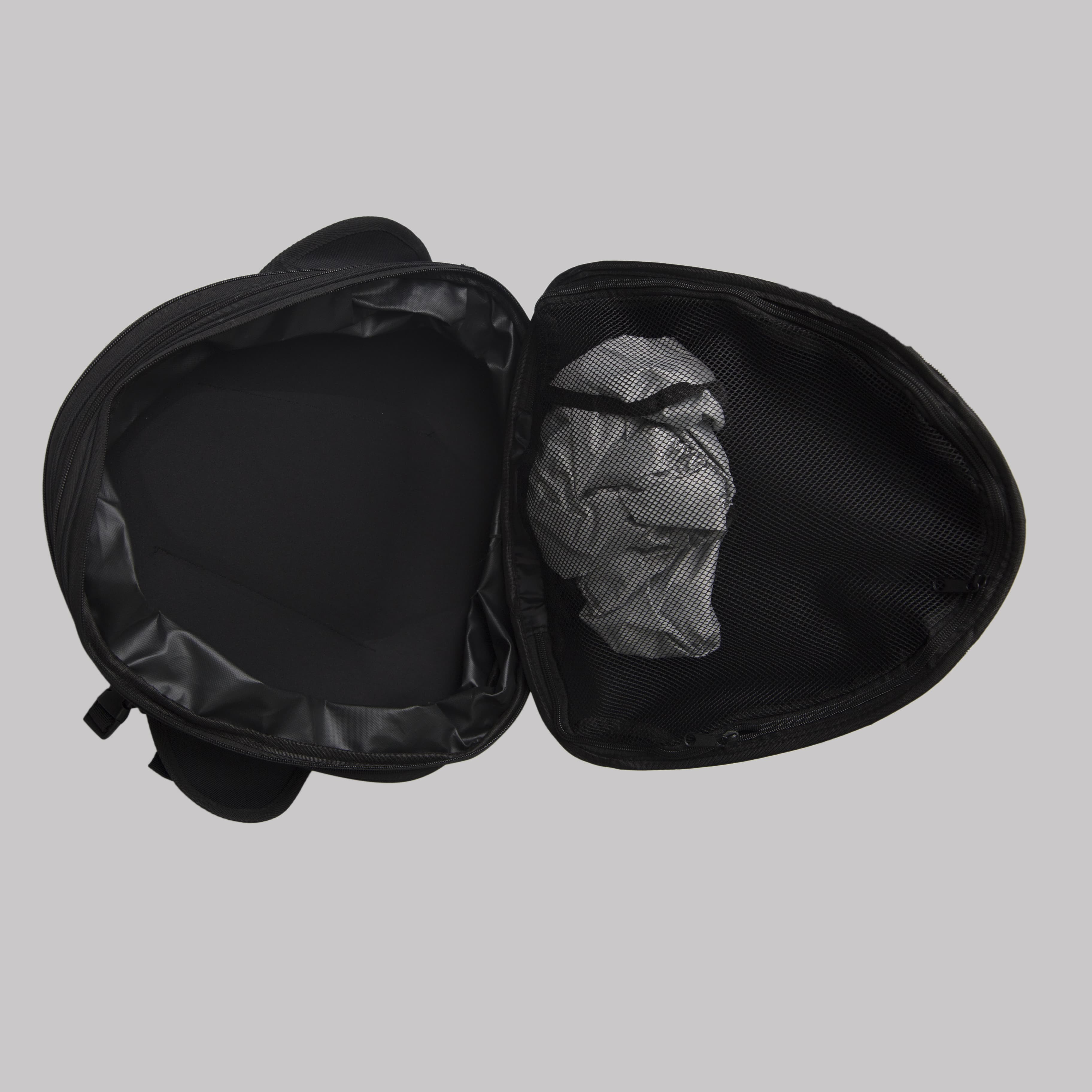 Monster Chariot tank bag is scratch resistant, non-slip base prevents slipping and protects the surface of your tank and at back seat. Fabricated from harsh weather resistant polyester, waterproof zippers and a top pocket, this bag comes with a rain cover for riding in any weather and a shoulder belt. It can be used daily.