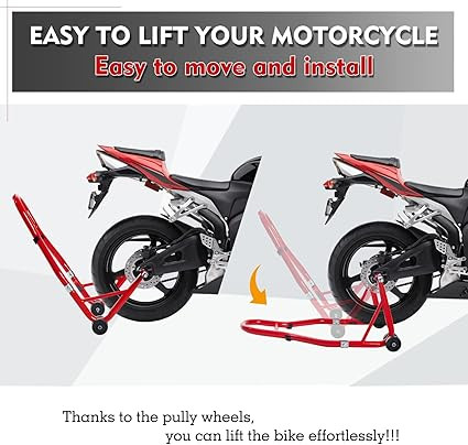 - EASY TO USE: Easy to assemble according to the page picture introductions. Easy to move because of 4 high quality PP wheels. It is designed to make your motorcycle maintenance more convenient