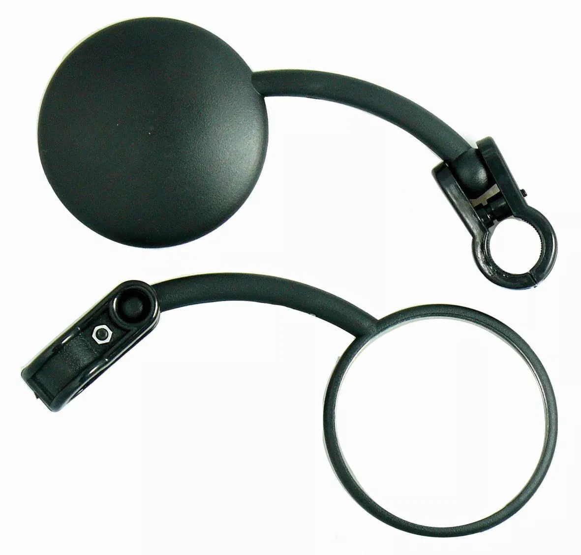 Handlebar mount holds the ball end of the mirror so you can fold down when travelling at warp speed through the scrub - In some cases you can mount below the bar to give better protection and view