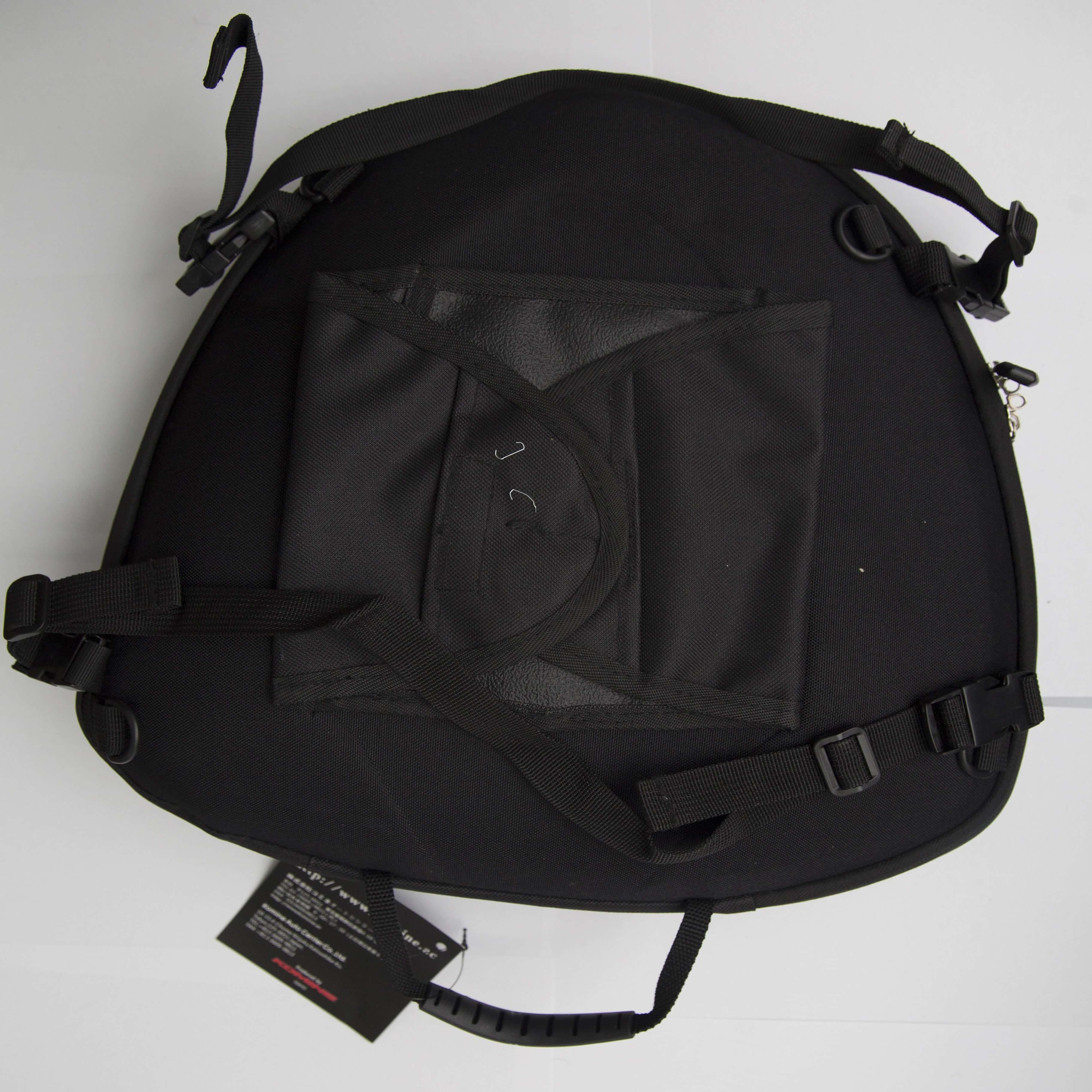 This Tank bag is scratch resistant, non-slip base prevents slipping and protects the surface of your tank and at back seat. Fabricated from harsh weather resistant polyester, waterproof zippers and a top pocket, this bag comes with a rain cover for riding in any weather and a shoulder belt. It can be used daily.